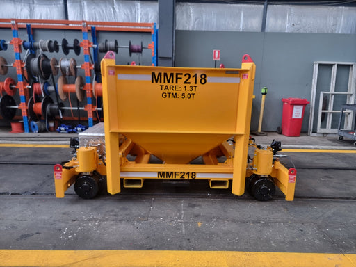 View full detailsRail trolley for transport of wet concrete complete with hopper.Removeable hopper with washable valve at base.Trolley fitted with spring applied, h...